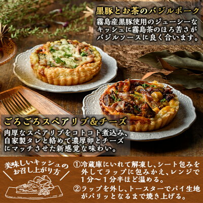 【ふるさと納税】霧島キッシュごろごろスペアリブ&チーズ・黒豚とお茶のバジルポーク(霧島産ブルーベリーの自家製ソース&ハニーマスタードソース付き)15センチホール2種類セット【chichinpuipuicafe霧島店】